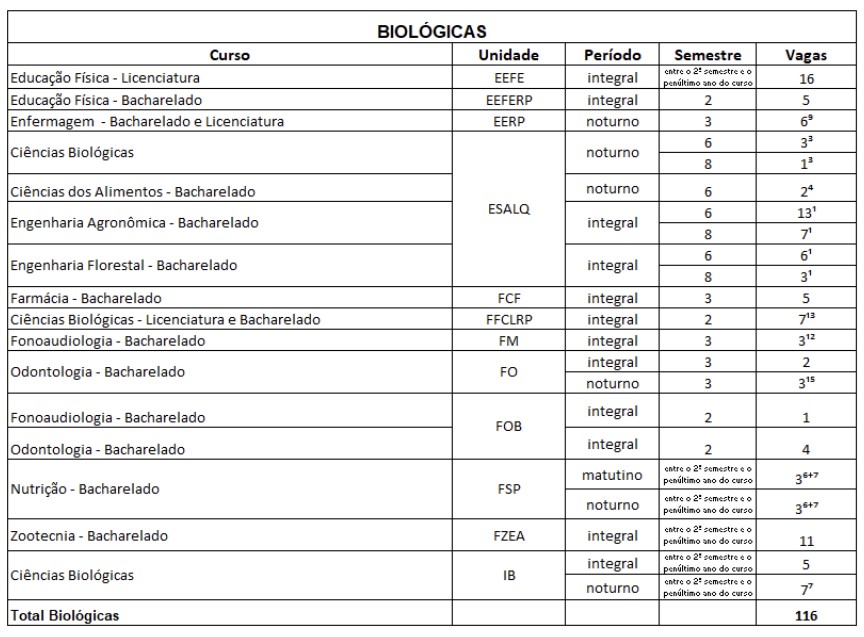 Transferência USP - 1ª fase - Biológicas